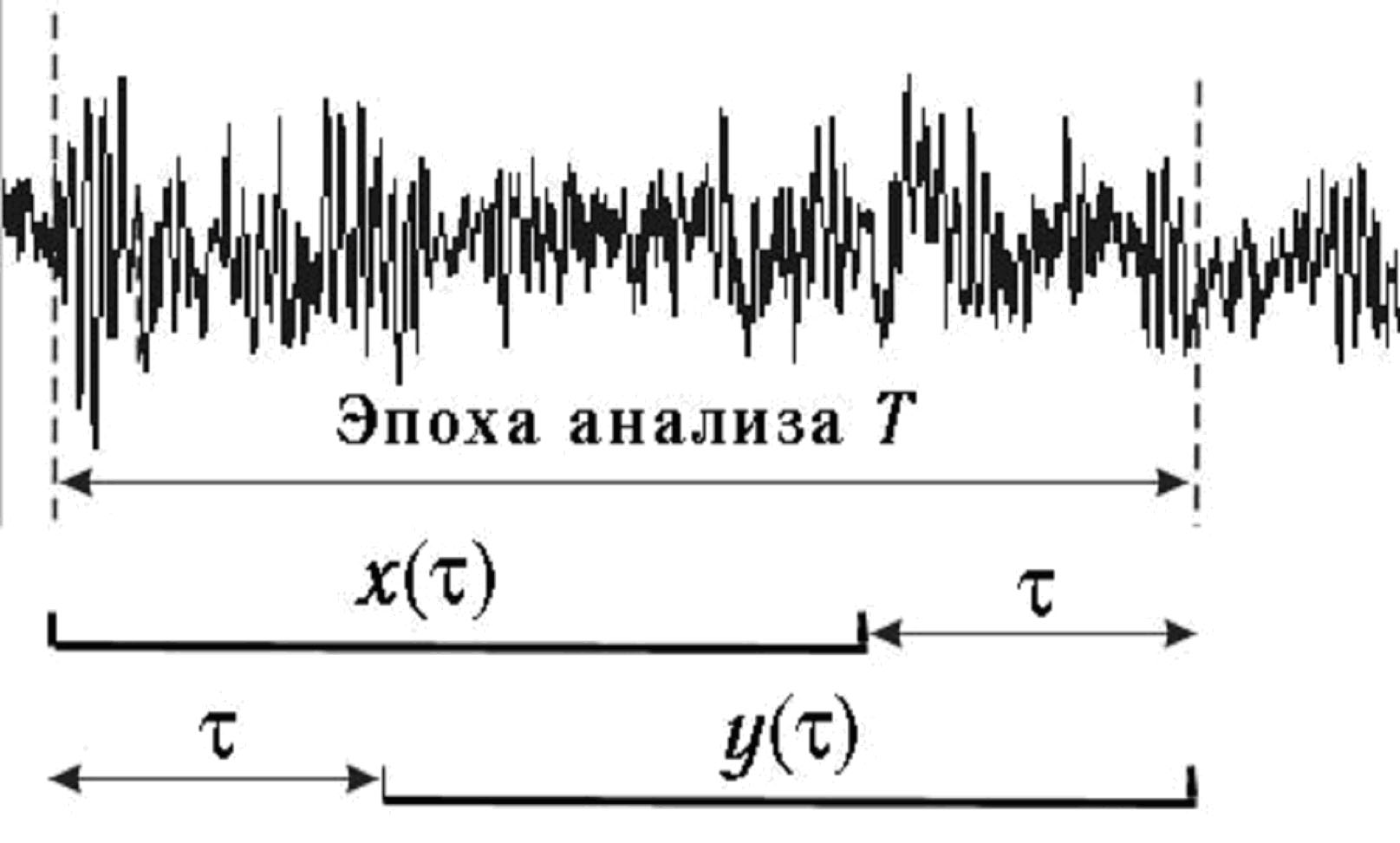 или между двумя процессами X, Y (кросскорреляция). Высокие