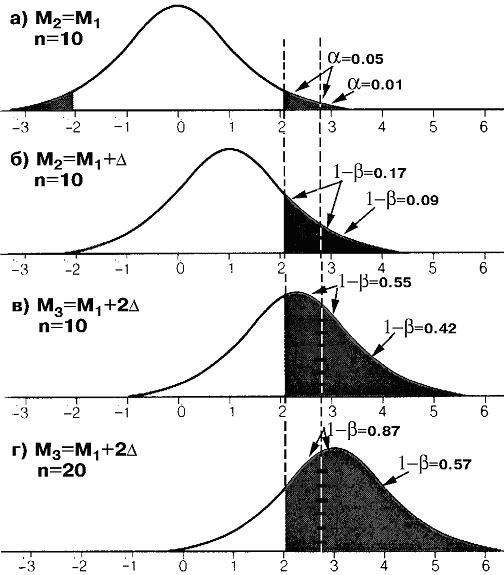 различия средних (рис. 1, а).