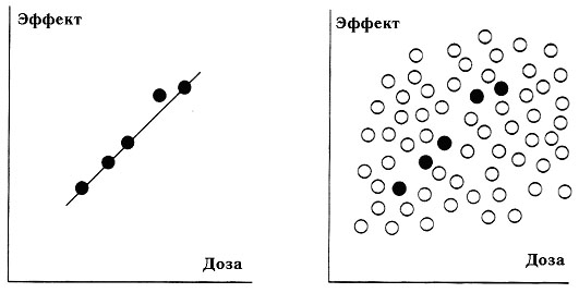 Проверка статистических гипотез как раз и дает средства оценки вероятности получения столь «непредставительной» выборки. При этом выясняется, что в отсутствии связи между лечебным эффектом и дозой полученная «зависимость» наблюдалась бы только в 5 из 1000 экспериментов. Итак, в данном случае исследователям просто не повезло. С меньшей вероятностью им бы «не повезло», если бы они взяли больше испытуемых.